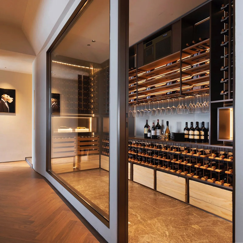 The layout of a home wine cellar should prioritize functionality and aesthetics. Start by assessing the available space and determining storage needs. Include racks of varying sizes to accommodate bottles of different shapes. Incorporate display shelves for your most prized wines. Modern glass wine cellars often feature sleek, minimalist designs that enhance visibility and elegance. A professional wine cellar specialist can guide you in optimizing your layout.