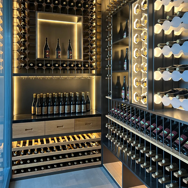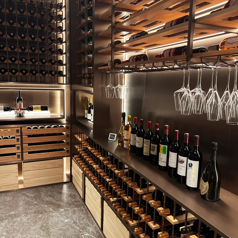 Choosing the right materials ensures durability and style. Hardwood, such as mahogany or oak, is a popular choice for wine racks due to its strength and resistance to moisture. Glass walls and doors, paired with stainless steel accents, create a modern aesthetic. Lighting is another critical aspect. LED lights are energy-efficient and produce minimal heat, protecting your wine from temperature fluctuations.