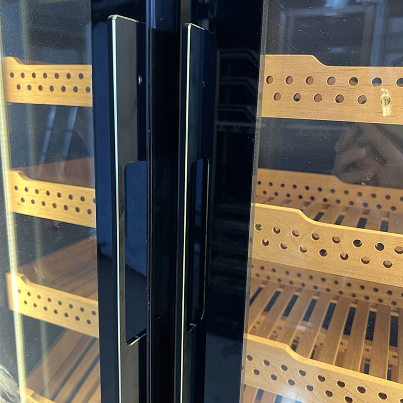 This single-zone, dual-door humidor cabinet electric adopt a high-quality Embraco compressor from the U.S., known for its stable performance, efficient cooling, low vibration, and minimal noise. The dual water tank system at the base ensures consistent humidity levels.