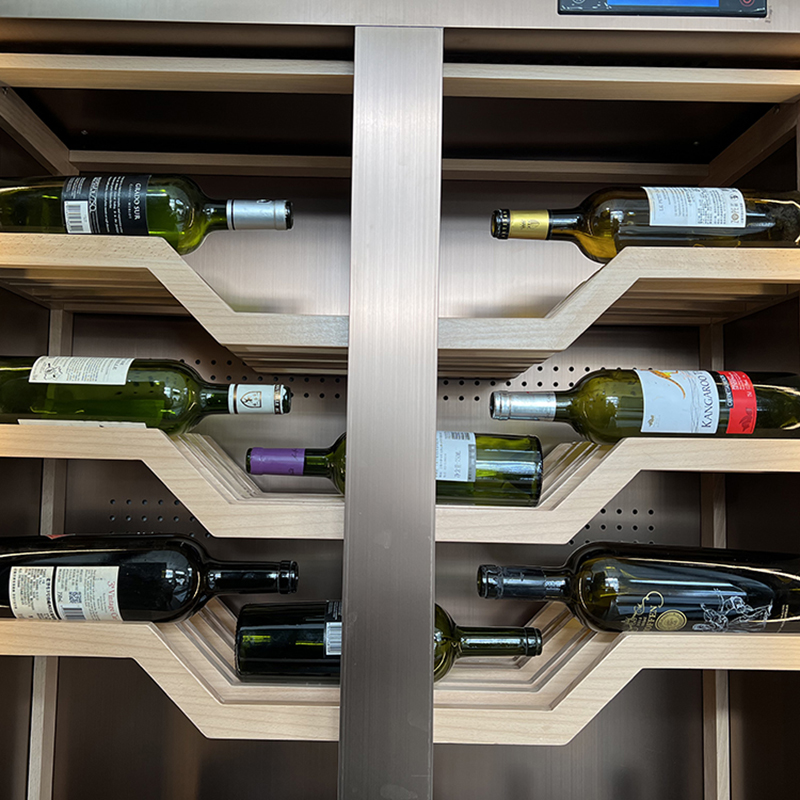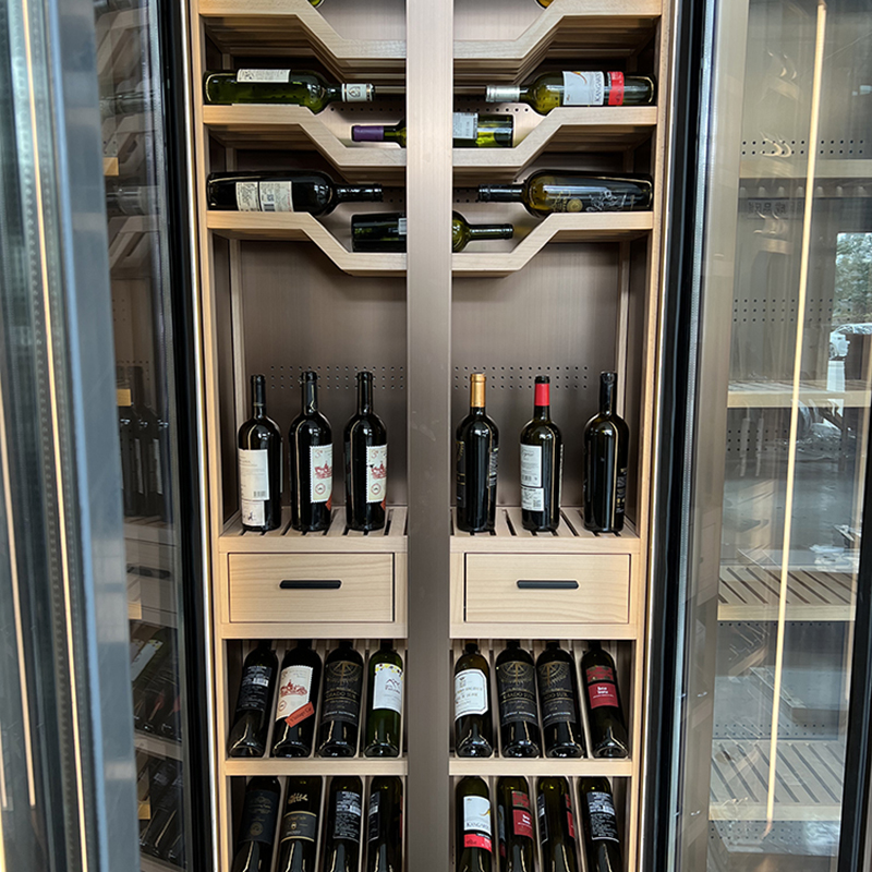 When customizing a wine cellar cabinet, consider the dimensions in relation to the installation space. Ensure the cabinet is neither too cramped nor too spacious. Additionally, allow for adequate ventilation and airflow to maintain a good storage environment.