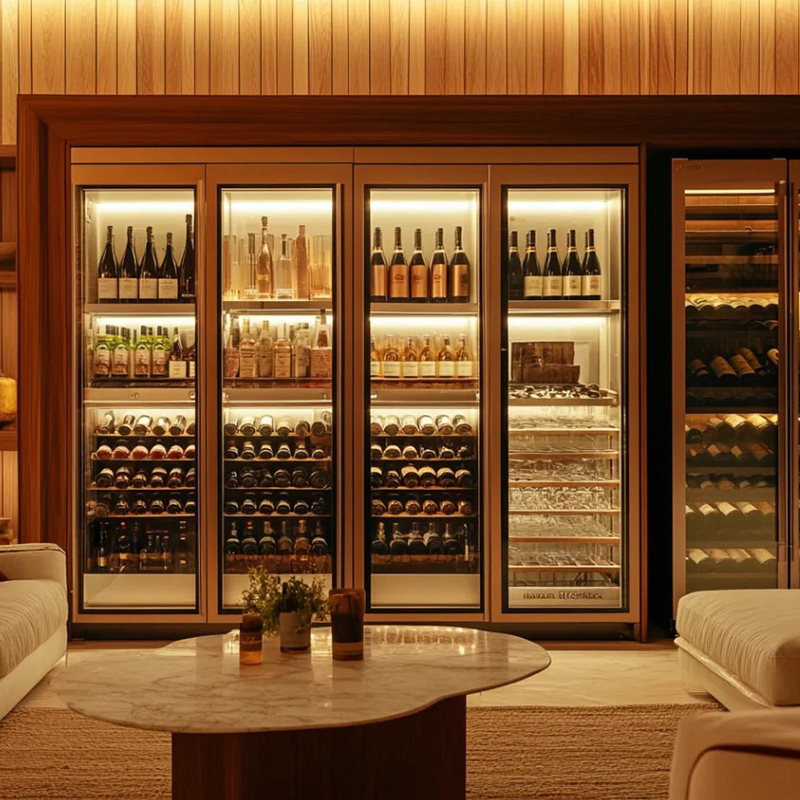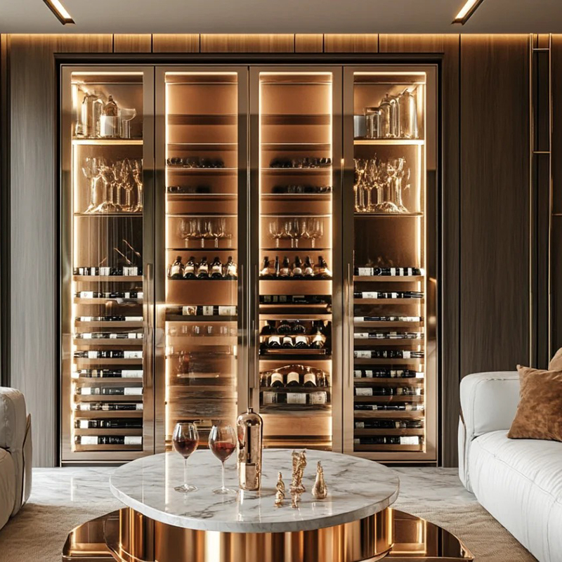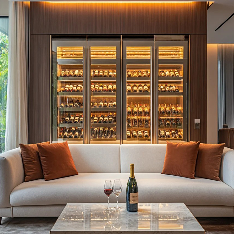 Proper temperature control is crucial for custom hotel wine display cellars, especially given their larger capacity. A well-planned temperature zoning system ensures optimal storage conditions for different types of wine. The cooling system must match the cellar’s size, delivering efficient performance while minimizing energy consumption and noise. In some cases, outdoor cooling units may be necessary to achieve the best results. This not only improves cooling efficiency but also reduces noise impact in the hotel environment.