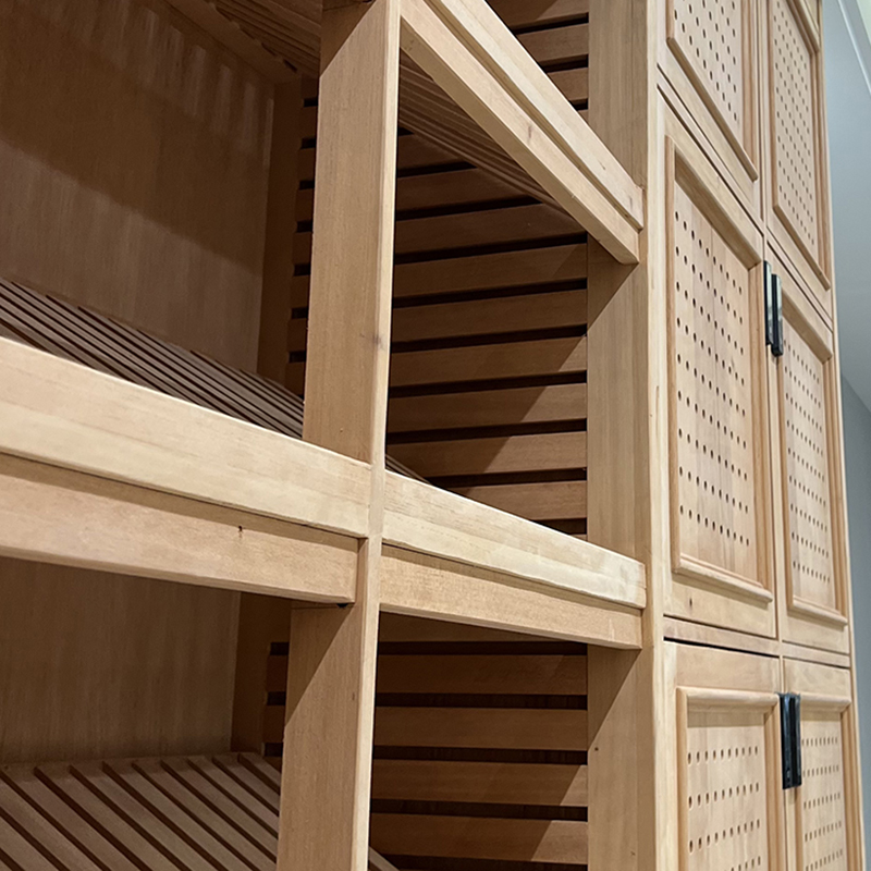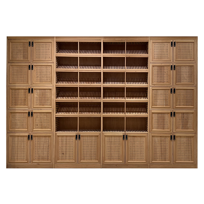Made from Spanish cedarwood or high-quality hardwood, this cabinet helps regulate humidity and prevent insects. The perforated doors allow airflow, maintaining a stable environment for cigars.